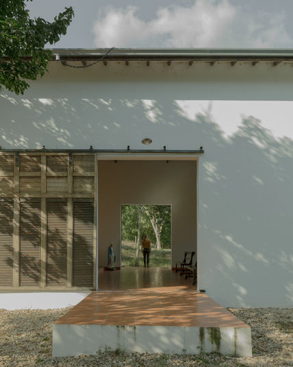 Implantada em um platô bem ao centro do território, a volumetria da pré-existencia que se destaca na paisagem é permeada por uma única porta principal e algumas poucas janelas.
